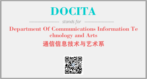 上述内容是“Department Of Communications Information Technology and Arts”作为“DOCITA”的缩写,解释为“通信信息技术与艺术系”时的信息,以及英文缩略词DOCITA所代表的英文单词,其对应的中文拼音、详细解释以及在英文中的流行度和相关分类、应用领域及应用示例等。