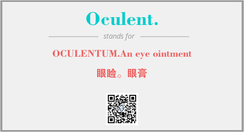 上述内容是“OCULENTUM.An eye ointment”作为“Oculent.”的缩写,解释为“眼睑。眼膏”时的信息,以及英文缩略词Oculent.所代表的英文单词,其对应的中文拼音、详细解释以及在英文中的流行度和相关分类、应用领域及应用示例等。