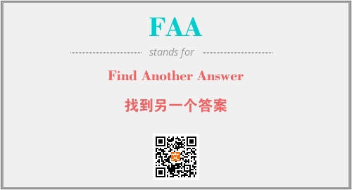 英文缩略词“FAA”经常作为“Find Another Answer”的英文缩写来使用,中文表示:“找到另一个答案”。本文将详细介绍英文缩写词FAA所代表英文单词,其对应的中文拼音、详细解释以及在英语中的流行度。此外,还有关于缩略词FAA的分类、应用领域及相关应用示例等。