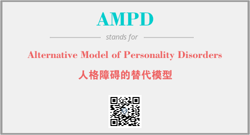 上述内容是“Alternative Model of Personality Disorders”作为“AMPD”的缩写,解释为“人格障碍的替代模型”时的信息,以及英文缩略词AMPD所代表的英文单词,其对应的中文拼音、详细解释以及在英文中的流行度和相关分类、应用领域及应用示例等。