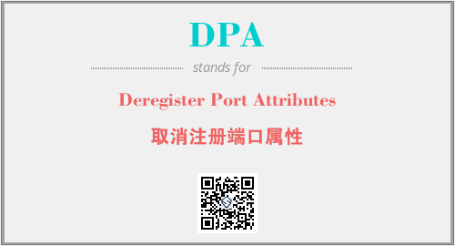 上述内容是“Deregister Port Attributes”作为“DPA”的缩写,解释为“取消注册端口属性”时的信息,以及英文缩略词DPA所代表的英文单词,其对应的中文拼音、详细解释以及在英文中的流行度和相关分类、应用领域及应用示例等。