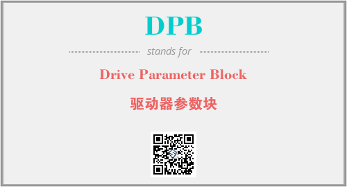 英文缩略词“DPB”经常作为“Drive Parameter Block”的英文缩写来使用,中文表示:“驱动器参数块”。本文将详细介绍英文缩写词DPB所代表英文单词,其对应的中文拼音、详细解释以及在英语中的流行度。此外,还有关于缩略词DPB的分类、应用领域及相关应用示例等。