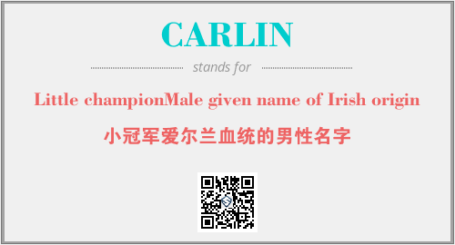 上述内容是“Little championMale given name of Irish origin”作为“CARLIN”的缩写,解释为“小冠军爱尔兰血统的男性名字”时的信息,以及英文缩略词CARLIN所代表的英文单词,其对应的中文拼音、详细解释以及在英文中的流行度和相关分类、应用领域及应用示例等。