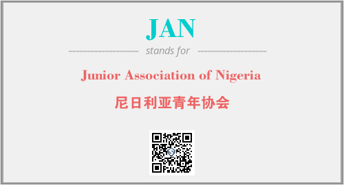 上述内容是“Junior Association of Nigeria”作为“JAN”的缩写,解释为“尼日利亚青年协会”时的信息,以及英文缩略词JAN所代表的英文单词,其对应的中文拼音、详细解释以及在英文中的流行度和相关分类、应用领域及应用示例等。
