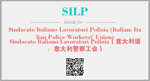 上述内容是“Sindacato Italiano Lavoratori Polizia (Italian: Italian Police Workers\' Union)”作为“SILP”的缩写,解释为“Sindacato Italiano Lavoratori Polizia(意大利语:意大利警察工会)”时的信息,以及英文缩略词SILP所代表的英文单词,其对应的中文拼音、详细解释以及在英文中的流行度和相关分类、应用领域及应用示例等。