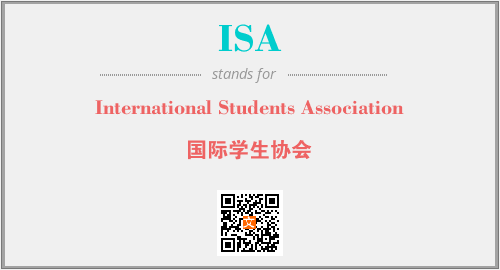 英文缩略词“ISA”经常作为“International Students Association”的英文缩写来使用,中文表示:“国际学生协会”。本文将详细介绍英文缩写词ISA所代表英文单词,其对应的中文拼音、详细解释以及在英语中的流行度。此外,还有关于缩略词ISA的分类、应用领域及相关应用示例等。