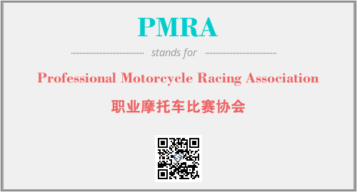 英文缩略词“PMRA”经常作为“Professional Motorcycle Racing Association”的英文缩写来使用,中文表示:“职业摩托车比赛协会”。本文将详细介绍英文缩写词PMRA所代表英文单词,其对应的中文拼音、详细解释以及在英语中的流行度。此外,还有关于缩略词PMRA的分类、应用领域及相关应用示例等。