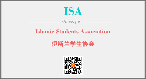 英文缩略词“ISA”经常作为“Islamic Students Association”的英文缩写来使用,中文表示:“伊斯兰学生协会”。本文将详细介绍英文缩写词ISA所代表英文单词,其对应的中文拼音、详细解释以及在英语中的流行度。此外,还有关于缩略词ISA的分类、应用领域及相关应用示例等。