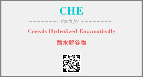 上述内容是“Cereals Hydrolized Enzymatically”作为“CHE”的缩写,解释为“酶水解谷物”时的信息,以及英文缩略词CHE所代表的英文单词,其对应的中文拼音、详细解释以及在英文中的流行度和相关分类、应用领域及应用示例等。