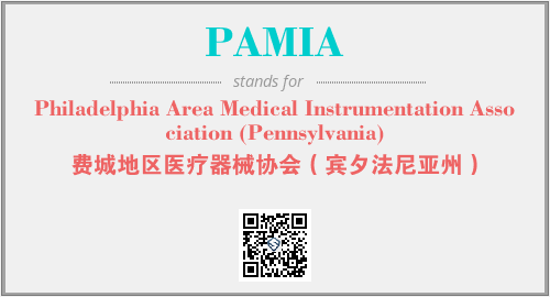 以上为Philadelphia Area Medical Instrumentation Association (Pennsylvania)英文缩略词PAMIA的中文解释,以及该英文缩写在英语的流行度、分类和应用领域方面的信息。
