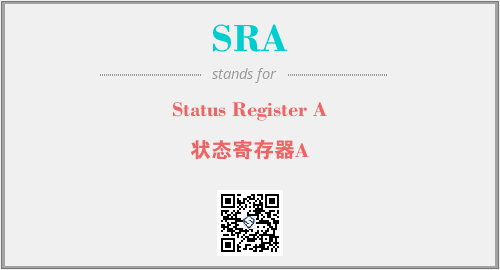 英文缩略词“SRA”经常作为“Status Register A”的英文缩写来使用,中文表示:“状态寄存器A”。本文将详细介绍英文缩写词SRA所代表英文单词,其对应的中文拼音、详细解释以及在英语中的流行度。此外,还有关于缩略词SRA的分类、应用领域及相关应用示例等。