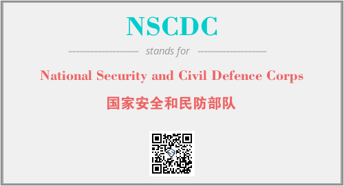 以上为National Security and Civil Defence Corps英文缩略词NSCDC的中文解释,以及该英文缩写在英语的流行度、分类和应用领域方面的信息。