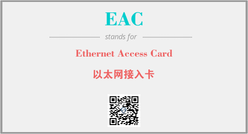 上述内容是“Ethernet Access Card”作为“EAC”的缩写,解释为“以太网接入卡”时的信息,以及英文缩略词EAC所代表的英文单词,其对应的中文拼音、详细解释以及在英文中的流行度和相关分类、应用领域及应用示例等。