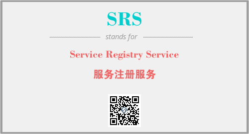 英文缩略词“SRS”经常作为“Service Registry Service”的英文缩写来使用,中文表示:“服务注册服务”。本文将详细介绍英文缩写词SRS所代表英文单词,其对应的中文拼音、详细解释以及在英语中的流行度。此外,还有关于缩略词SRS的分类、应用领域及相关应用示例等。