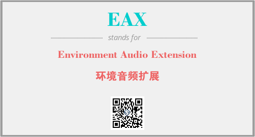 英文缩略词“EAX”经常作为“Environment Audio Extension”的英文缩写来使用,中文表示:“环境音频扩展”。本文将详细介绍英文缩写词EAX所代表英文单词,其对应的中文拼音、详细解释以及在英语中的流行度。此外,还有关于缩略词EAX的分类、应用领域及相关应用示例等。