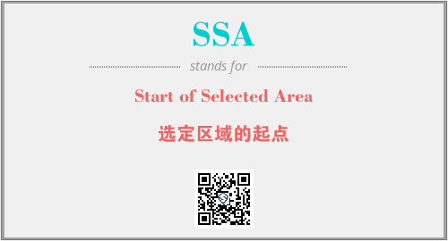 上述内容是“Start of Selected Area”作为“SSA”的缩写,解释为“选定区域的起点”时的信息,以及英文缩略词SSA所代表的英文单词,其对应的中文拼音、详细解释以及在英文中的流行度和相关分类、应用领域及应用示例等。