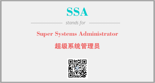 英文缩略词“SSA”经常作为“Super Systems Administrator”的英文缩写来使用,中文表示:“超级系统管理员”。本文将详细介绍英文缩写词SSA所代表英文单词,其对应的中文拼音、详细解释以及在英语中的流行度。此外,还有关于缩略词SSA的分类、应用领域及相关应用示例等。