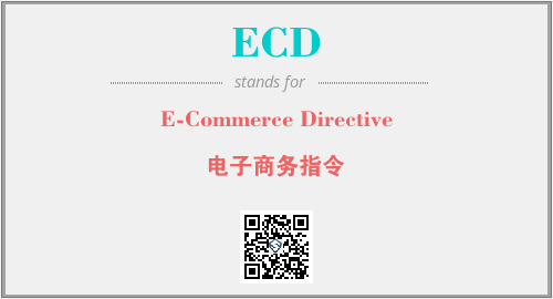 英文缩略词“ECD”经常作为“E-Commerce Directive”的英文缩写来使用,中文表示:“电子商务指令”。本文将详细介绍英文缩写词ECD所代表英文单词,其对应的中文拼音、详细解释以及在英语中的流行度。此外,还有关于缩略词ECD的分类、应用领域及相关应用示例等。