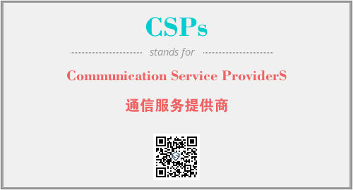 英文缩略词“CSPs”经常作为“Communication Service ProviderS”的英文缩写来使用,中文表示:“通信服务提供商”。本文将详细介绍英文缩写词CSPs所代表英文单词,其对应的中文拼音、详细解释以及在英语中的流行度。此外,还有关于缩略词CSPs的分类、应用领域及相关应用示例等。