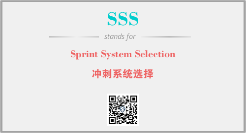 上述内容是“Sprint System Selection”作为“SSS”的缩写,解释为“冲刺系统选择”时的信息,以及英文缩略词SSS所代表的英文单词,其对应的中文拼音、详细解释以及在英文中的流行度和相关分类、应用领域及应用示例等。