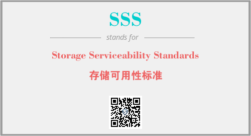上述内容是“Storage Serviceability Standards”作为“SSS”的缩写,解释为“存储可用性标准”时的信息,以及英文缩略词SSS所代表的英文单词,其对应的中文拼音、详细解释以及在英文中的流行度和相关分类、应用领域及应用示例等。