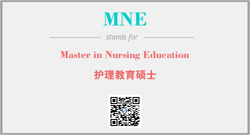 上述内容是“Master in Nursing Education”作为“MNE”的缩写,解释为“护理教育硕士”时的信息,以及英文缩略词MNE所代表的英文单词,其对应的中文拼音、详细解释以及在英文中的流行度和相关分类、应用领域及应用示例等。