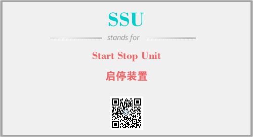 英文缩略词“SSU”经常作为“Start Stop Unit”的英文缩写来使用,中文表示:“启停装置”。本文将详细介绍英文缩写词SSU所代表英文单词,其对应的中文拼音、详细解释以及在英语中的流行度。此外,还有关于缩略词SSU的分类、应用领域及相关应用示例等。