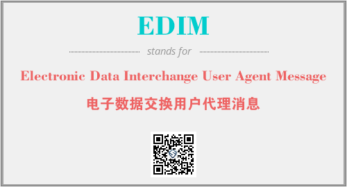 英文缩略词“EDIM”经常作为“Electronic Data Interchange User Agent Message”的英文缩写来使用,中文表示:“电子数据交换用户代理消息”。本文将详细介绍英文缩写词EDIM所代表英文单词,其对应的中文拼音、详细解释以及在英语中的流行度。此外,还有关于缩略词EDIM的分类、应用领域及相关应用示例等。