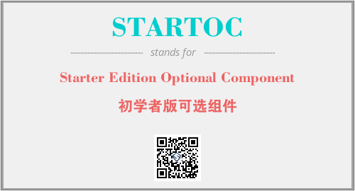 上述内容是“Starter Edition Optional Component”作为“STARTOC”的缩写,解释为“初学者版可选组件”时的信息,以及英文缩略词STARTOC所代表的英文单词,其对应的中文拼音、详细解释以及在英文中的流行度和相关分类、应用领域及应用示例等。