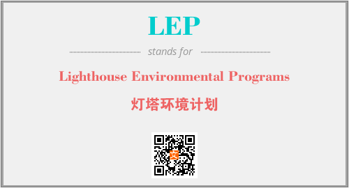英文缩略词“LEP”经常作为“Lighthouse Environmental Programs”的英文缩写来使用,中文表示:“灯塔环境计划”。本文将详细介绍英文缩写词LEP所代表英文单词,其对应的中文拼音、详细解释以及在英语中的流行度。此外,还有关于缩略词LEP的分类、应用领域及相关应用示例等。