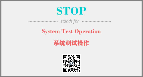上述内容是“System Test Operation”作为“STOP”的缩写,解释为“系统测试操作”时的信息,以及英文缩略词STOP所代表的英文单词,其对应的中文拼音、详细解释以及在英文中的流行度和相关分类、应用领域及应用示例等。