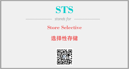 上述内容是“Store Selective”作为“STS”的缩写,解释为“选择性存储”时的信息,以及英文缩略词STS所代表的英文单词,其对应的中文拼音、详细解释以及在英文中的流行度和相关分类、应用领域及应用示例等。