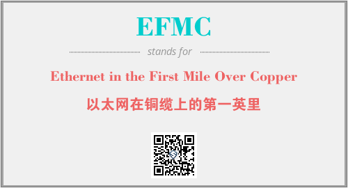上述内容是“Ethernet in the First Mile Over Copper”作为“EFMC”的缩写,解释为“以太网在铜缆上的第一英里”时的信息,以及英文缩略词EFMC所代表的英文单词,其对应的中文拼音、详细解释以及在英文中的流行度和相关分类、应用领域及应用示例等。