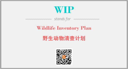 上述内容是“Wildlife Inventory Plan”作为“WIP”的缩写,解释为“野生动物清查计划”时的信息,以及英文缩略词WIP所代表的英文单词,其对应的中文拼音、详细解释以及在英文中的流行度和相关分类、应用领域及应用示例等。