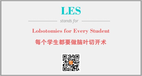 上述内容是“Lobotomies for Every Student”作为“LES”的缩写,解释为“每个学生都要做脑叶切开术”时的信息,以及英文缩略词LES所代表的英文单词,其对应的中文拼音、详细解释以及在英文中的流行度和相关分类、应用领域及应用示例等。
