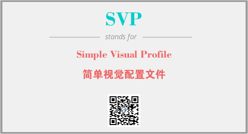 上述内容是“Simple Visual Profile”作为“SVP”的缩写,解释为“简单视觉配置文件”时的信息,以及英文缩略词SVP所代表的英文单词,其对应的中文拼音、详细解释以及在英文中的流行度和相关分类、应用领域及应用示例等。