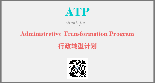 英文缩略词“ATP”经常作为“Administrative Transformation Program”的英文缩写来使用,中文表示:“行政转型计划”。本文将详细介绍英文缩写词ATP所代表英文单词,其对应的中文拼音、详细解释以及在英语中的流行度。此外,还有关于缩略词ATP的分类、应用领域及相关应用示例等。