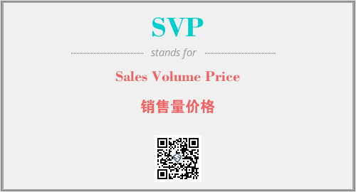 上述内容是“Sales Volume Price”作为“SVP”的缩写,解释为“销售量价格”时的信息,以及英文缩略词SVP所代表的英文单词,其对应的中文拼音、详细解释以及在英文中的流行度和相关分类、应用领域及应用示例等。