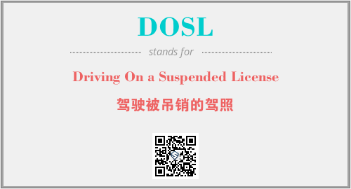 上述内容是“Driving On a Suspended License”作为“DOSL”的缩写,解释为“驾驶被吊销的驾照”时的信息,以及英文缩略词DOSL所代表的英文单词,其对应的中文拼音、详细解释以及在英文中的流行度和相关分类、应用领域及应用示例等。