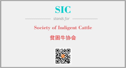 英文缩略词“SIC”经常作为“Society of Indigent Cattle”的英文缩写来使用,中文表示:“贫困牛协会”。本文将详细介绍英文缩写词SIC所代表英文单词,其对应的中文拼音、详细解释以及在英语中的流行度。此外,还有关于缩略词SIC的分类、应用领域及相关应用示例等。