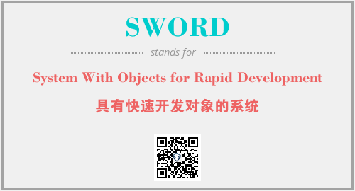 英文缩略词“SWORD”经常作为“System With Objects for Rapid Development”的英文缩写来使用,中文表示:“具有快速开发对象的系统”。本文将详细介绍英文缩写词SWORD所代表英文单词,其对应的中文拼音、详细解释以及在英语中的流行度。此外,还有关于缩略词SWORD的分类、应用领域及相关应用示例等。