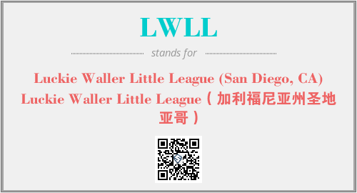 上述内容是“Luckie Waller Little League (San Diego, CA)”作为“LWLL”的缩写,解释为“Luckie Waller Little League(加利福尼亚州圣地亚哥)”时的信息,以及英文缩略词LWLL所代表的英文单词,其对应的中文拼音、详细解释以及在英文中的流行度和相关分类、应用领域及应用示例等。