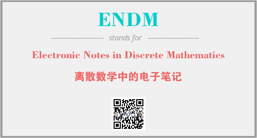 上述内容是“Electronic Notes in Discrete Mathematics”作为“ENDM”的缩写,解释为“离散数学中的电子笔记”时的信息,以及英文缩略词ENDM所代表的英文单词,其对应的中文拼音、详细解释以及在英文中的流行度和相关分类、应用领域及应用示例等。