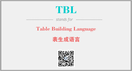 英文缩略词“TBL”经常作为“Table Building Language”的英文缩写来使用,中文表示:“表生成语言”。本文将详细介绍英文缩写词TBL所代表英文单词,其对应的中文拼音、详细解释以及在英语中的流行度。此外,还有关于缩略词TBL的分类、应用领域及相关应用示例等。