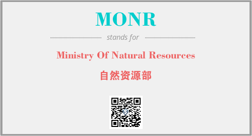 英文缩略词“MONR”经常作为“Ministry Of Natural Resources”的英文缩写来使用,中文表示:“自然资源部”。本文将详细介绍英文缩写词MONR所代表英文单词,其对应的中文拼音、详细解释以及在英语中的流行度。此外,还有关于缩略词MONR的分类、应用领域及相关应用示例等。