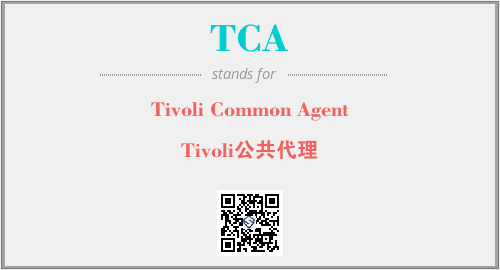 英文缩略词“TCA”经常作为“Tivoli Common Agent”的英文缩写来使用,中文表示:“Tivoli公共代理”。本文将详细介绍英文缩写词TCA所代表英文单词,其对应的中文拼音、详细解释以及在英语中的流行度。此外,还有关于缩略词TCA的分类、应用领域及相关应用示例等。