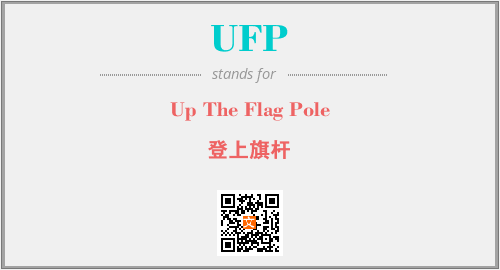 上述内容是“Up The Flag Pole”作为“UFP”的缩写,解释为“登上旗杆”时的信息,以及英文缩略词UFP所代表的英文单词,其对应的中文拼音、详细解释以及在英文中的流行度和相关分类、应用领域及应用示例等。