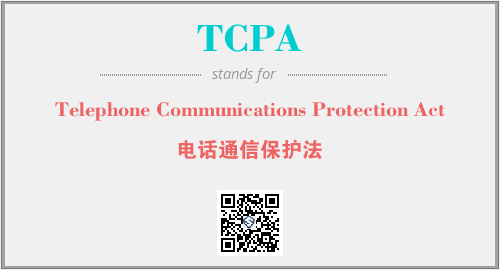 上述内容是“Telephone Communications Protection Act”作为“TCPA”的缩写,解释为“电话通信保护法”时的信息,以及英文缩略词TCPA所代表的英文单词,其对应的中文拼音、详细解释以及在英文中的流行度和相关分类、应用领域及应用示例等。