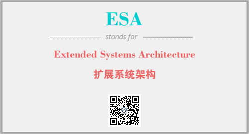 英文缩略词“ESA”经常作为“Extended Systems Architecture”的英文缩写来使用,中文表示:“扩展系统架构”。本文将详细介绍英文缩写词ESA所代表英文单词,其对应的中文拼音、详细解释以及在英语中的流行度。此外,还有关于缩略词ESA的分类、应用领域及相关应用示例等。
