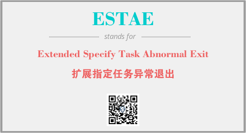 英文缩略词“ESTAE”经常作为“Extended Specify Task Abnormal Exit”的英文缩写来使用,中文表示:“扩展指定任务异常退出”。本文将详细介绍英文缩写词ESTAE所代表英文单词,其对应的中文拼音、详细解释以及在英语中的流行度。此外,还有关于缩略词ESTAE的分类、应用领域及相关应用示例等。